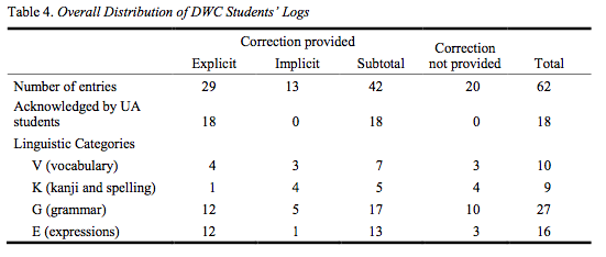 - However, UA students’ log data indicated that, when noticed, implicit corrections and corrections through negotiations seemed to lead to a better understanding of their own errors.